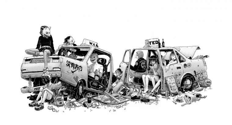 "Stromabwärts d", encre sur papier, 2015, 57 x 76,5 cm (via).