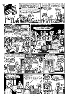 Ce déplacement est vraisemblablement rapide. La monture du personnage possède d’ailleurs quelques attributs empruntés aux motos que nous connaissons (un pare-brise, un phare, une selle, etc.) et le personnage y est juché dans un posture indiquant une certaine hâte (il est debout et ne touche pas la selle, tel un jockey debout sur les étriers). Un dernier indice nous est donné par le discret nuage de poussière qui semble soulevé plutôt par l’ombre portée du véhicule que par le véhicule lui-même. Matsumoto n’utilise aucun autre signe suggérant la vitesse. L’angle de vue est le plus neutre possible (vue de profil, à hauteur de regard) et ne permet aucune utilisation dynamique de la perspective. Pas de traits de vitesse non plus, pas de sortie de case… Cette grande case couvrant la moitié de la planche offre plutôt une impression de durée et d’immobilité par sa composition et ses proportions équilibrées (à l’inverse du strip précédent constitué de cinq cases étirées en hauteur). Matsumoto a dessiné un personnage allant vite (un léger excentrage, une posture dynamique et un petit nuage de poussière ont suffi) sans dessiner la vitesse elle-même, ou plutôt sans s’attacher à reproduire l’effet produit sur la rétine par la vitesse.