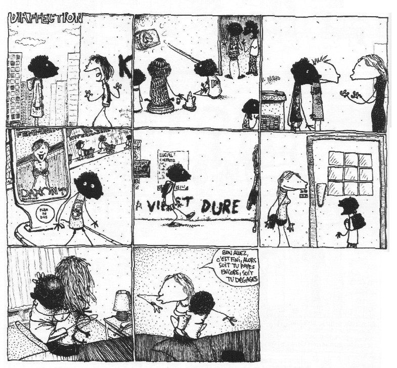 C’est même là l’autre grande réussite des Plans de la ville : les personnages en fil-de-fer y ont de vraies voix, surprenantes, décalées, bienvenues, inscrites dans des registres surprenants, qui ne se cantonnent pas à l’imitation plus ou moins réussie de la tchatche de banlieue apprise dans un manuel. Ducy, Elise, Gaspar, Berthy, les flic, les éducs, tous ont leur voix propre, et qui change, leur voix intérieure n’est pas la même que celle de leurs dialogues, et toute leur petite existence en fil-de-fer y trouve une réalité elle aussi surprenante, plus riche et plus grasse que le maigre dessin ne la laissait prévoir. Les Plans de la ville, ça n’est pas un livre de plus sur la banlieue. C’est une expérience réussie, une langue jusqu’ici pas entendue, une façon inventive et attentive de saisir les circonvolutions de l’humanité urbaine. Ça ne pouvait pas s’appeler autrement, finalement.