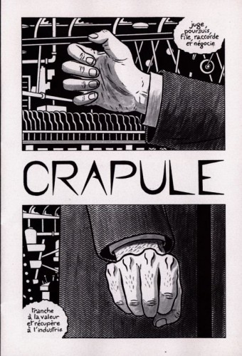 Copieux volume faisant suite à son binôme franchement sinistre sorti cet été chez les Requins, Franky et Nicole. La couverture est débandante (et plus encore la quatrième de couverture qui réconcilie dans une belle harmonie les blaireaux et ceux qui se foutent d’eux) et ne laisse pas imaginer toutes les belles pages qui composent la revue. Pas encore eu le temps de tout lire, mais la qualité immédiatement visible de l’ensemble et la grande variété de la gamme des travaux est saisissante : elle s’étend sur un large spectre — graphiquement, historiquement — allant de Oriane Lassus au duo Martiny et Petit-Roulet, et me fait découvrir le travail de Jérôme Dubois et un beau récit de Delphine Panique. La revue laisse assez de place aux auteurs pour que les rencontres soient approfondies et dépassent le sentiment d’affleurement habituel en revue. Tout ça doit encourager à passer outre l’emballage et à tenter l’expérience.