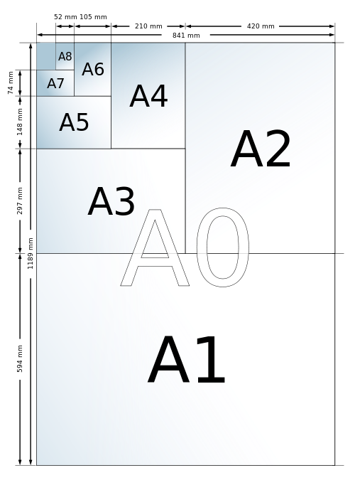 Mais il faut signaler aussi que cette façon de faire est très proche de la façon ont détermine la taille d’une feuille de papier par pliage successif. On parle de d’in-folio, d’in-quarto, d’in-octavo, etc. Et on ne peut s’empêcher de penser à la manière dont sont représentées les différentes tailles de feuille de papier moderne à partir du format A0. On notera que le schéma correspond exactement à la composition de Ware.