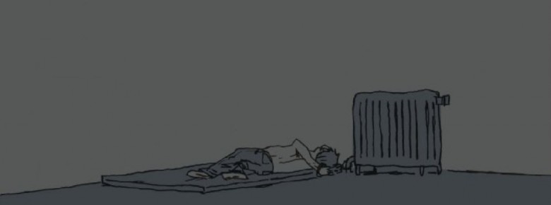 Guy Delisle : Oui, c’était particulier à plusieurs niveaux. Après, j’ai essayé de dessiner des maisons en Tchétchénie, sauf que quand on tape « Tchétchénie » sur Internet, il n’y a que des ruines. Je suis donc allé faire un tour en images du côté de la Géorgie pour prendre quelque chose qui ressemblait. Ça, c’était pour l’architecture. Après, ce qui m’intéressait, c’était lui, son quotidien. La pièce était blanche, donc je savais que je n’aurais pas grand-chose avec lequel me rattraper. Ça se passe dans sa tête, dans son imagination, et tout ça. À un moment, quand même, j’étais content, parce qu’à partir de la page 220, on lui donne une chemise, parce que c’est un septembre, il fait un peu frais. En fait, cette chemise était vraiment bienvenue, parce qu’après 220 pages à dessiner un gars torse nu, je n’en pouvais plus. Je partage un atelier avec une dizaine d’auteurs, et on a un scan en commun, un gros scanner, et on laisse toujours nos papiers traîner. Donc pendant un an et demi, ils venaient me voir en me disant : « attend, ça fait un an et demi qu’on voit un radiateur, une ampoule, et un gars sur un matelas, mais tu n’en as pas marre ? » Et là, c’est un moment où je n’en pouvais plus. J’ai dit : « oui, mais la semaine prochaine, il aura une chemise, ça va s’améliorer un peu. » (rire)
