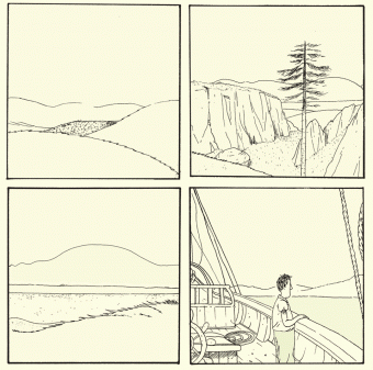 Sammy Harkham : En fait, l’objectif — je pensais qu’il serait intéressant de faire un livre qui ferait tout ça, dans le contexte d’une seule histoire. Ce qui fait que tu pourrais avoir des séquences où on a simplement : moment — moment — moment, chacun se voit accordé la même importance, et c’est au lecteur d’essayer d’en retirer l’émotion qui s’en dégage. Puis jouer avec ça, avoir des choses qui vont un peu plus vite ou un peu moins. Je dois dire, sur beaucoup d’aspects ce n’est pas quelque chose qui m’est propre. Si tu considères Chris Ware, c’est sans doute l’exemple le plus évident, la manière dont il joue beaucoup avec l’échelle en fonction de la page. Parfois, il va y avoir dix ou vingt pages où tout est basé sur une grille, et d’un coup il éclate tout ça. Mais Seth est un autre exemple. C’est vraiment ce genre de choses où tout est — cela n’a rien à voir avec la forme, et tout à voir avec le fond. La narration, ce dont l’histoire a besoin.