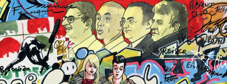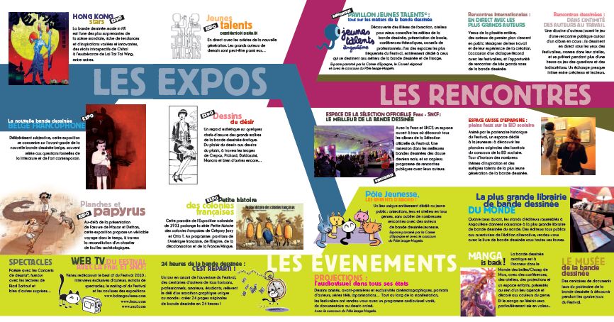 Le programme est au diapason, solide et soigneusement éclectique — pas de doute, le Festival ronronne, dans une formule désormais bien rôdée. II y aura donc l’exposition-du-président (Baru, après Blutch en 2010 et Munoz en 2009) ; l’exposition-sur-un-pays-exotique (Hong-Kong après la Russie et la Corée) ; l’exposition-nouvelle-bande-dessinée (les Belges francophones, après les Flamands en 2009) ; les expositions-des-grands-succès-populaires (l’univers de Troy et les Peanuts cette année, les Tuniques Bleues et Léonard l’année dernière, Lucien et Boule et Bill l’année précédente), et puis l’exposition-du-petit-éditeur (la Petite Histoire des Colonies de Grégory Jarry et Otto T. parue chez Flblb cette année, la Saison des Flèches de Guillaume Trouillard et Samuel Stento aux éditions de la Cerise en 2010, Winshluss en 2009) — bref, on pourrait établir bien des parallèles entre cette édition-ci et celles qui l’ont précédée, comme si l’on reproduisait, année après année, une recette éprouvée dans laquelle on éviterait de trop bousculer les choses. L’heure est désormais aux micro-ajustements, comme l’espace manga abandonnant cette année son «Manga Building» pour rentrer dans le rang et rejoindre les bulles des grands éditeurs, seule véritable innovation de l’édition à venir.