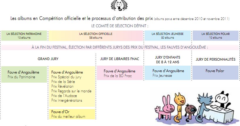 - Plusieurs raisons de tiquer, sans même faire intervenir une subjectivité marquée : le choix de nominer l’intégrale d’Alec plutôt que le tome 4 paru la même année ; l’inclusion de La grande guerre de Charlie (série publiée originellement entre 1979 et 1985) dans la Sélection Officielle plutôt qu’au Patrimoine ; la présence de Fantax (paru en juin 2010) dans une Sélection du Patrimoine 2011 ; l’absence totale de comics américains, au bénéfice des graphic novels (alors que l’on se veut représenter toute la bande dessinée) ; etc.